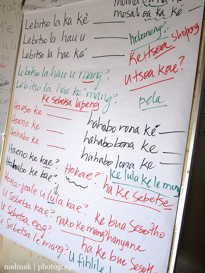 In between our Sesotho lessons we had a whole suite of other activities that made for a very interesting weekend. Aside from learning some foundations of the language, we also had the opportunity to discuss different aspects of Basotho culture. Understanding some of the key Basotho traditions and customs around weddings, funerals and home life was really interesting. Even more interesting was talking about different attitudes, behaviors, gender roles and the work ethic in Lesotho (more on all of that to come).