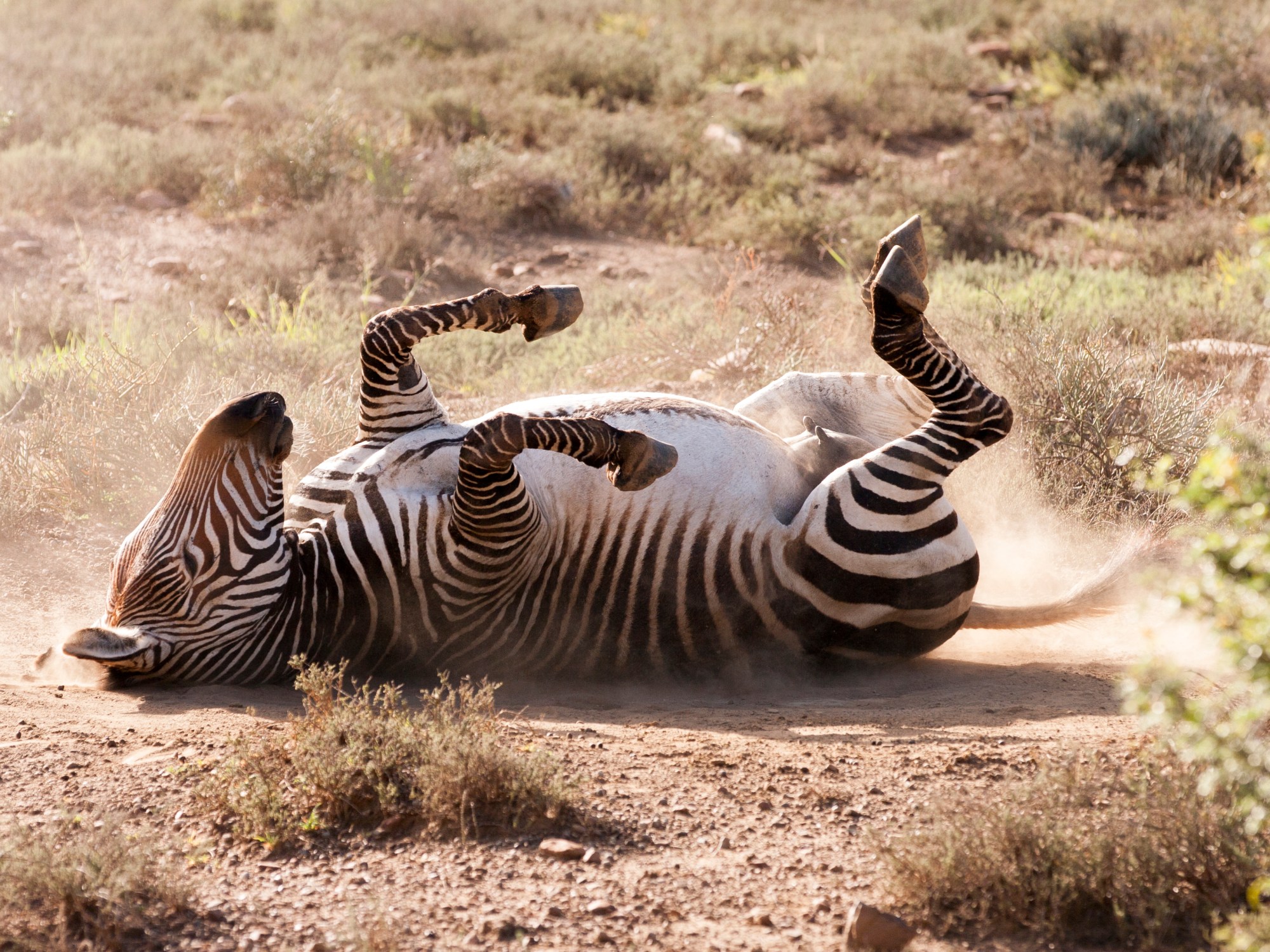 The Cape Mountain Zebra was once on the very edge of extinction, but with the founding of Mountain Zebra and a couple of other smaller national parks in South Africa, this sub-species of mountain zebra is on the mend, though still vulnerable due to its limited habitat. These animals are slightly smaller than their brethren of the plains and they have all white bellies, but really unless you are a zoologist, it is pretty hard to tell the differences, unless the two types are standing next to each other! Zebras are great safari animals, because they generally are unbothered by close interactions with humans and tend to offer some fun facial expressions or physical activities.